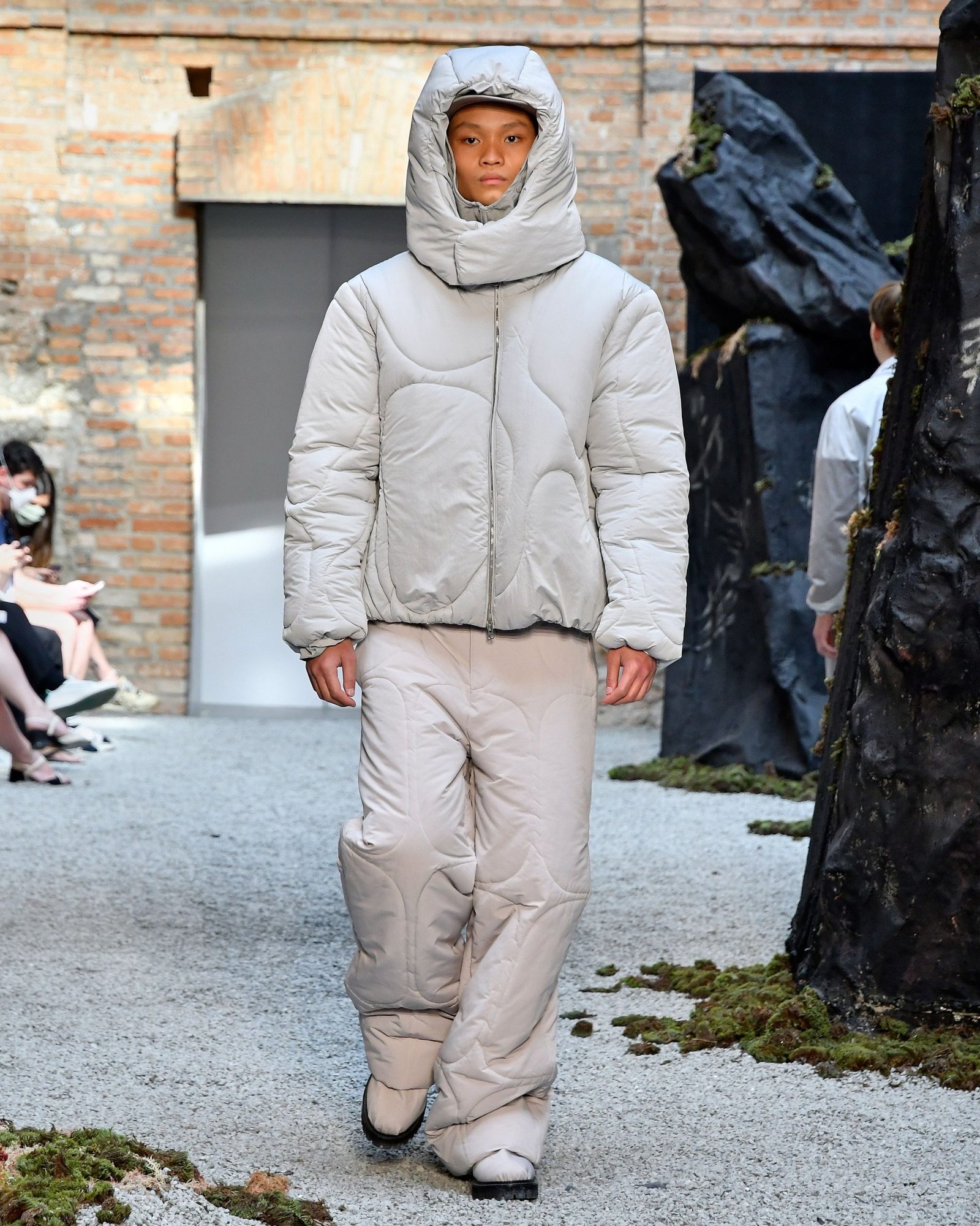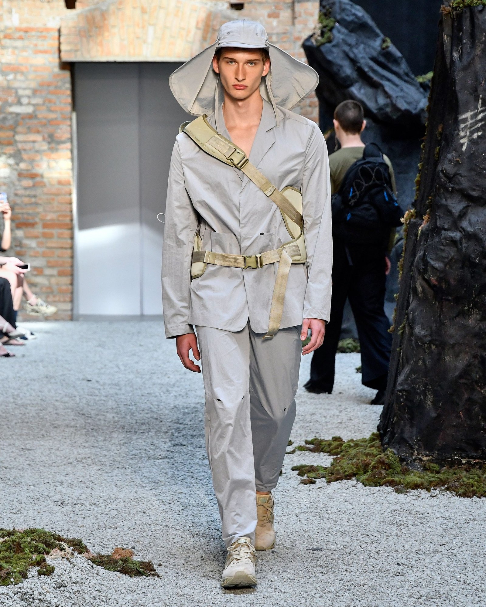 A coleção foi pensando em trazer a união da alfaiataria, tecnologia unidas com elementos esportivos, utilizando materiais sustentáveis, como por exemplo sapatos a base de cactos.