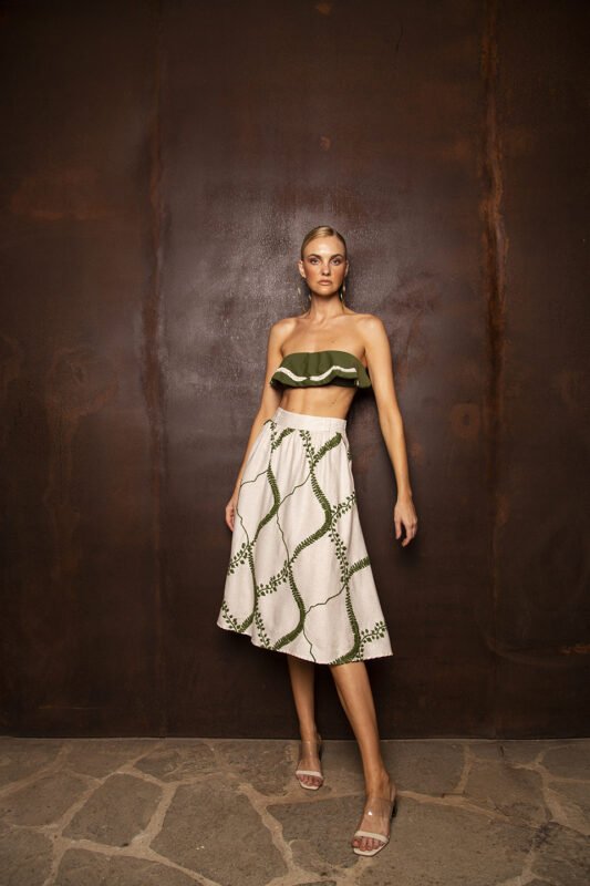 “Quando eu fui desabrochando para o meu autoconhecimento e para a minha auto aceitação, era muito difícil. A gente sabe que a moda não joga a favor das gordinhas […] e o Renato [Thomaz] sempre me deu muito apoio nesse sentido. Eu sempre me senti muito abraçada pela marca, porque tem modelagens que ficam bem em mim […] A Água de Coco sempre foi uma aliada nessa auto aceitação.”