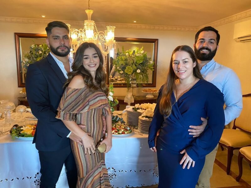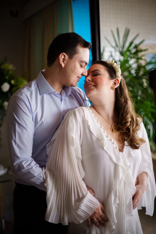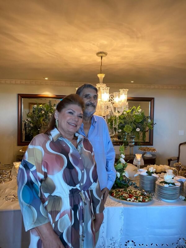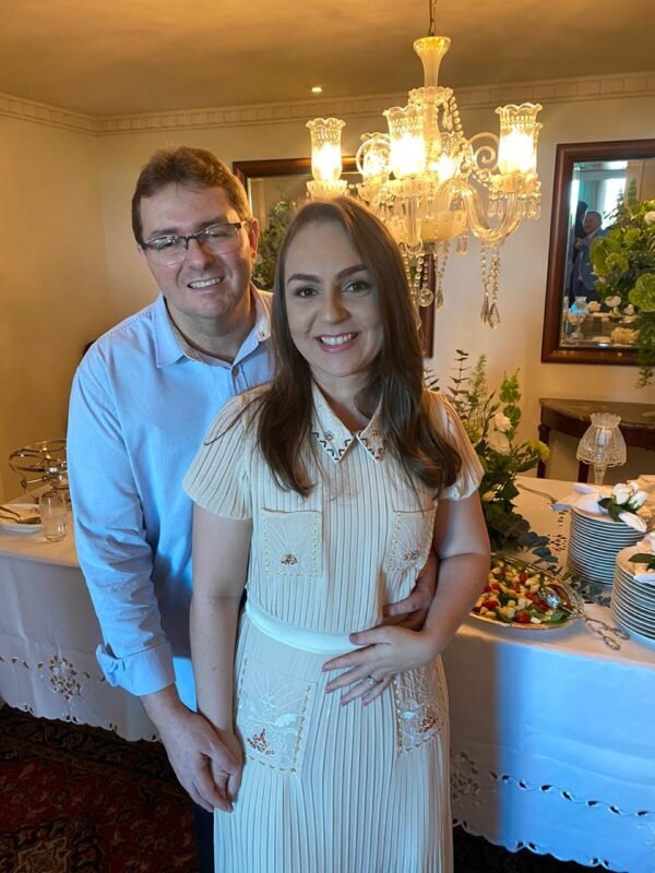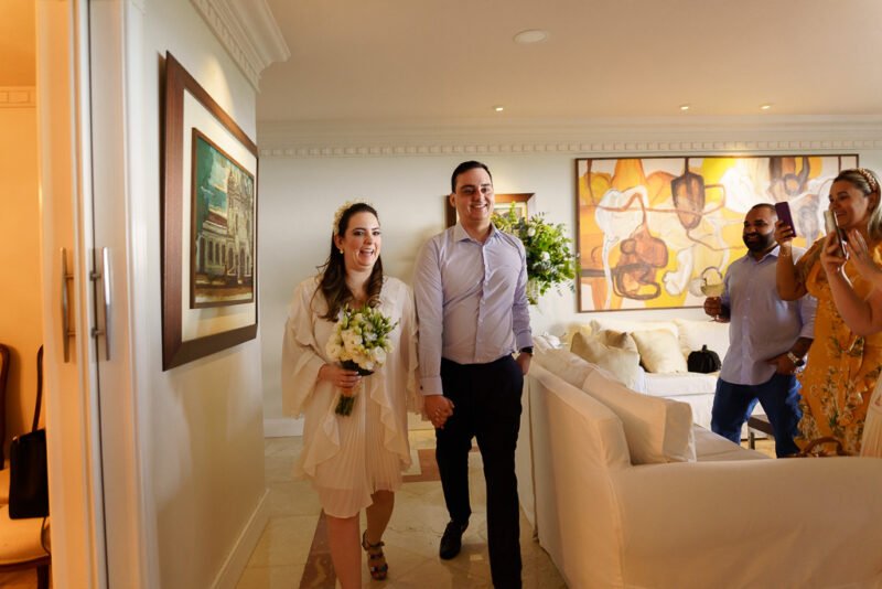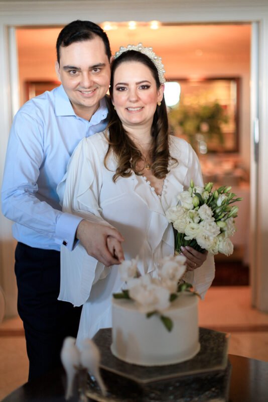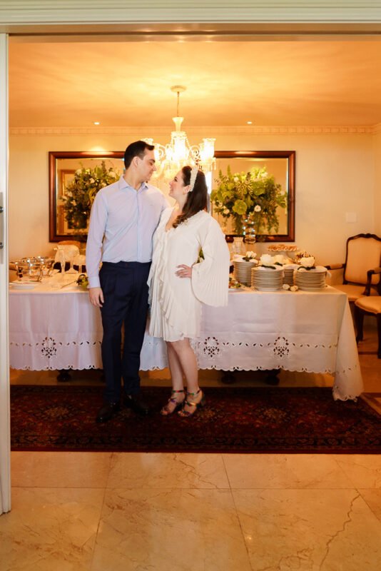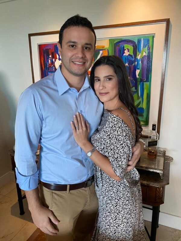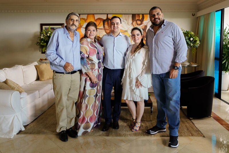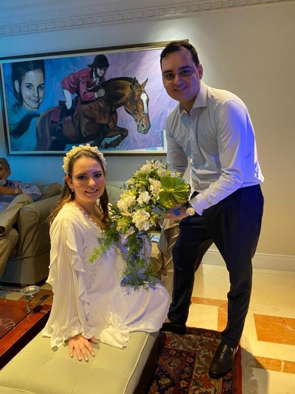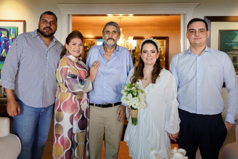 Os noivos estavam em casa e o cartório iniciou a videochamada. Por ali mesmo, as alianças foram trocadas e a união foi oficializada. Em seguida à celebração online, Júlia e Alceu Pereira, pais da noiva, receberam os padrinhos e poucos amigos para almoço no apartamento do Barão do Rio Negro, na orla da praia da Ponta Negra. A estrelada banqueteira Cândida Barbosa foi quem abasteceu o bufê.