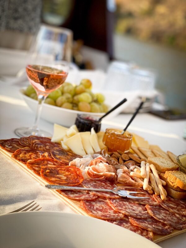 Entre os destaques do tour de vinhos, que sai do Pinhão, sobre até a Comporta e depois desce para parar em uma das duas quintas parceiras do Pipadouro – a Real Companhia Velha e a Quinta do Crasto, está o menu de almoço que pode ser assinado pelo chef português com estrela no Michelin, Rui Paula. Optamos pelo sunset e os petiscos e a tábua de frios e embutidos na nossa curta viagem não deixou nada a desejar.