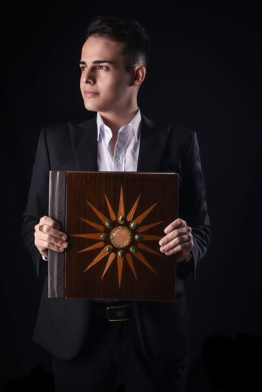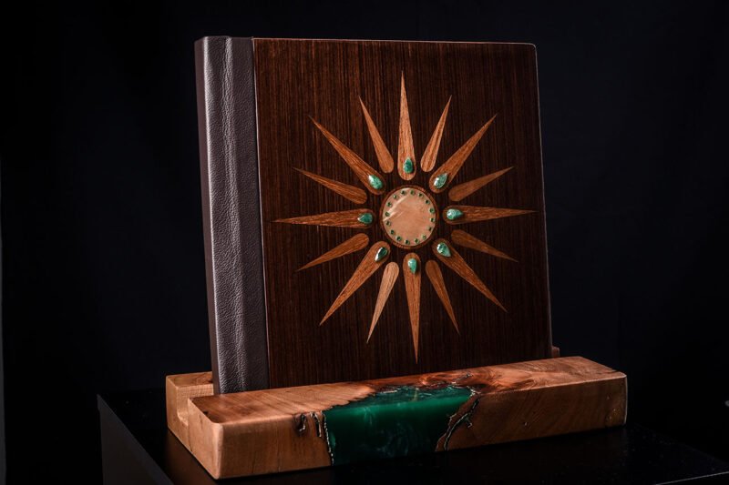 O case, que guarda o álbum, é de jaqueira, uma madeira nobre, linda e resistente. “É muito mais que um álbum, é uma obra de arte onde vamos guardar recordações”, conclui.
