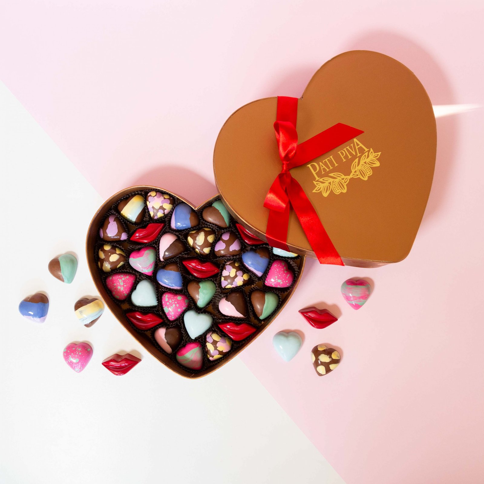 Para não errar no presente, a Pati Piva preparou opções saborosas e coloridas. É impossível não se apaixonar pelas criações da linha que leva opções para todos os gostos. Destaque para as Caixas com bombons recheados coloridos pintados à mão, Pães de Mel, Urso de Chocolate, Bouquet Comestível e os Corações Recheados com os sabores que são clássicos da marca: Puxa Puxa de Pistache, Nutella e Cookies, Dragê com Brigadeiro, Escondidinho de Pistache e as versões Zero Açúcar com Cookies e Vegano com Nibs de Cacau.
