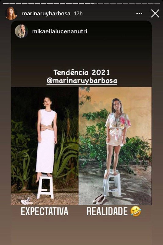 Marina Ruy Barbosa é referência quando o assunto é moda e uma foto da musa foi o suficiente para viralizar nas redes. A atriz compartilhou um clique em que aparece com um look branco e prata do estilista australiano Christopher Esber, em cima de um banquinho, com o pé direito para fora, pronta para entrar em 2021. Foi o suficiente para seus seguidores e fãs lançarem um desafio. Passaram a postar fotos imitando a atriz no melhor estilo Expectativa X Realidade.