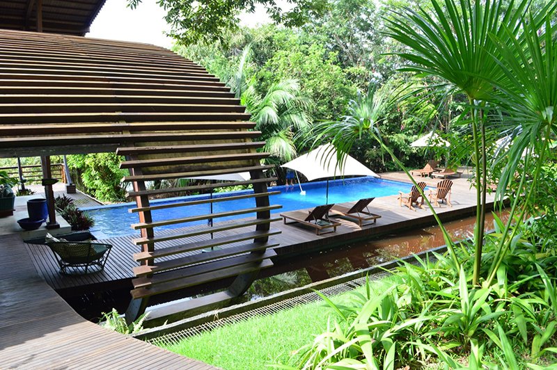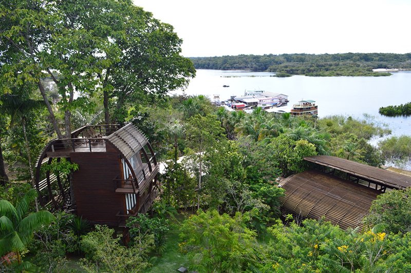 As acomodações amplas, rústicas e artesanais refletem a própria floresta tropical Amazônica. “A empresa Expedição Katerre nos pediu uma pousada que tivesse a cara do lugar, para abrigar o público das Expedições existentes. Era preciso proporcionar uma experiência de embarque e desembarque própria e ainda oferecer a opção de descanso antes de seguirem ao aeroporto. Já as pessoas que não fazem parte das expedições de navegação têm a opção de dormir em terra e no hotel descobrir a floresta amazônica”, contam os arquitetos.