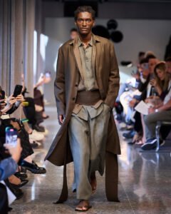 O styling, assinado por Pedro Salles, explorou sobreposições, amarrações e volumes em uma estética precisa e contemporânea.As peças reafirmaram a essência atemporal da Ricardo Almeida: lã em diálogo com algodão e linho, sobrepostos a paletós, calças e overcoats fluidos.