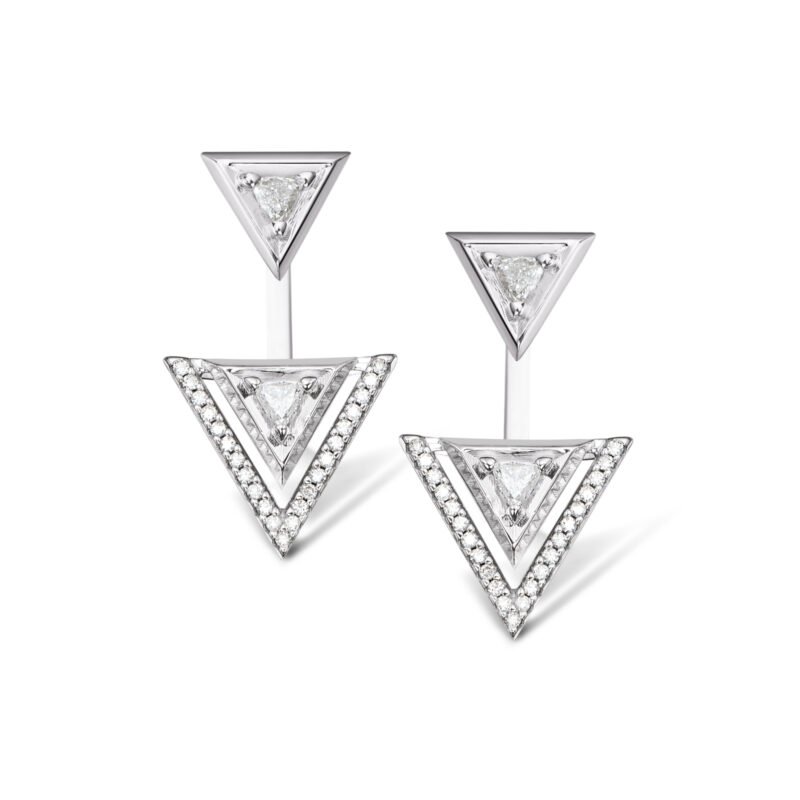 Para o lançamento da quarta edição da Coleção Vivara, a marca apresenta o diamante de lapidação triangular, dando ênfase à identidade da marca de forma sofisticada e minimalista. A cravação central é realizada manualmente, inteira em ouro branco e com adição de diamantes.